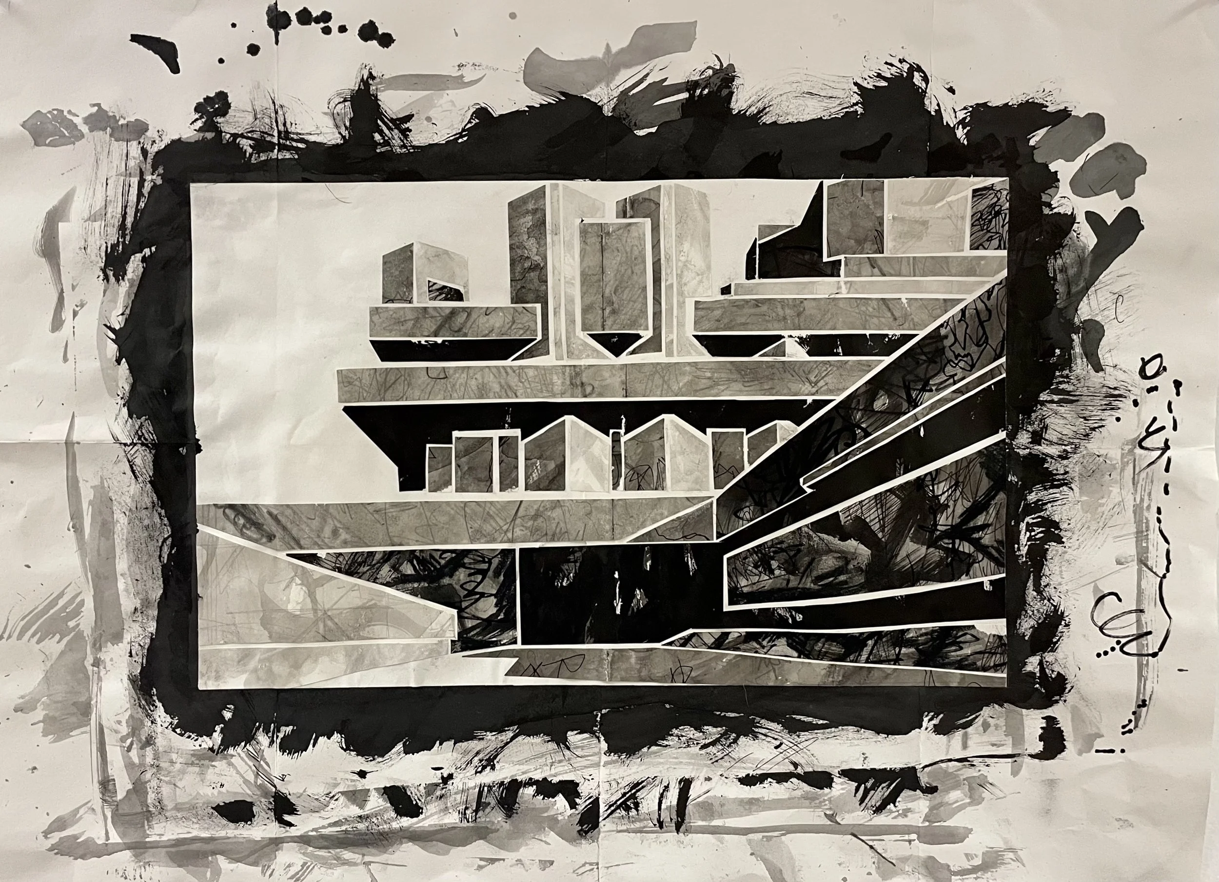 India ink pantings collaged on paper